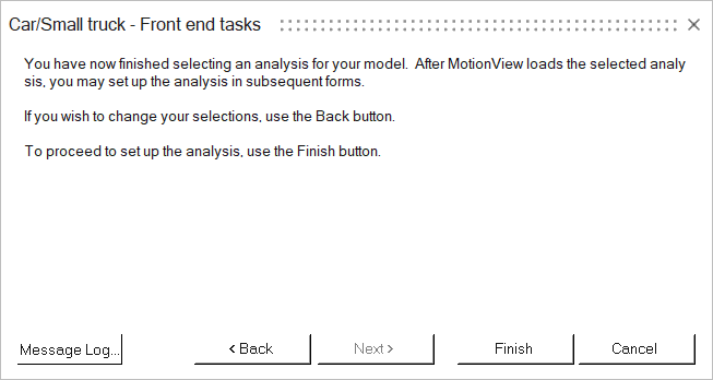 Any number of analysis tasks can be loaded into a model using the Task Wizard. Analysis tasks are displayed in the Model Browser. The analysis task is added to the model file when the model is saved so that it is loaded each time you open the model file.