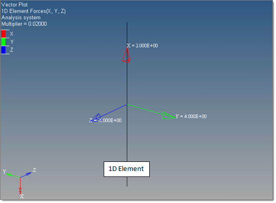 forces or moments vectors will plot at the centroid of 1D elements.Figure 2.