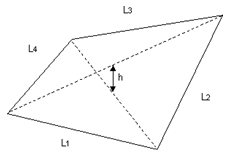 Only applies to quads or rectangular faces of solids.Figure 5. Warpage = 100 * h / max { Li }, where h is the minimum distance
