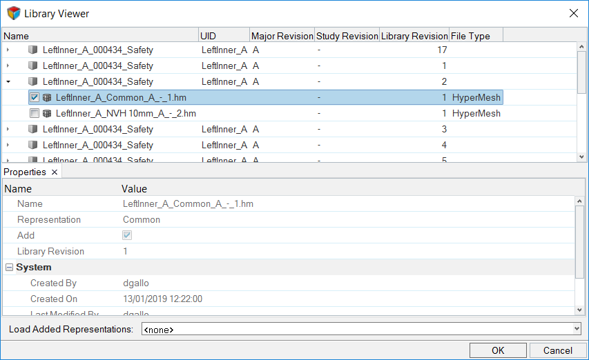 Select the Part that contains the representations you would like to