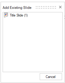 - If a Presentation master is imported and does not contain existing slides, the menu lists No slides found.
