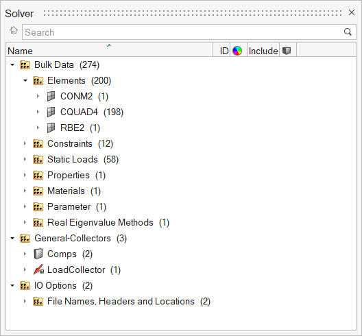 The Solver Browser provides a solver centric view of the model structure in a flat, listed tree structure.