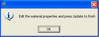 | 4. | Once the data is created, it will prompt you to click OK to finish and inspect the material data. This new material will have the name specified in the first line of the file for the keyword Name. |