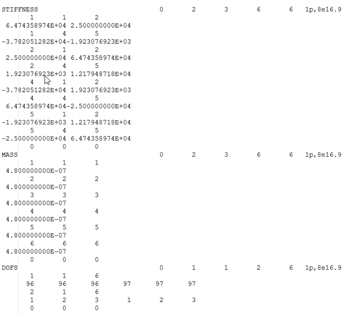 This matrix is output for Linear Transient Heat Transfer. It is output