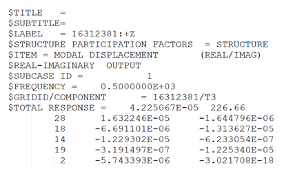 - Legacy format for the export of modal participation to H3D or PUNCH files: PFMODE (type, OUTPUT=outfile)=setdof/PEAKOUT is also supported.