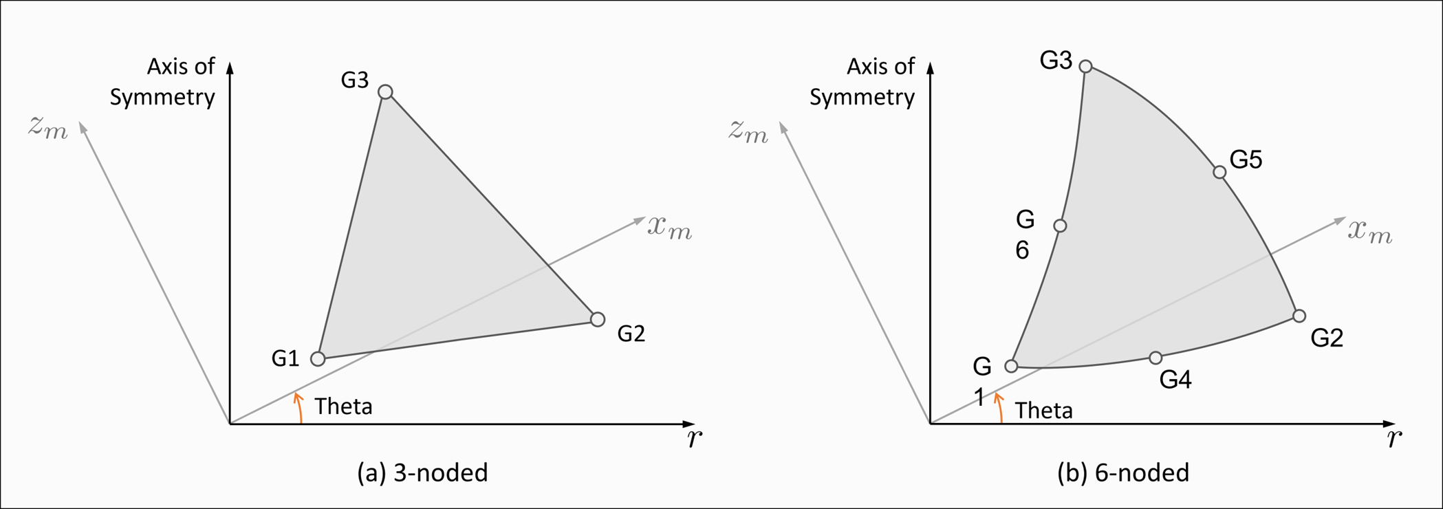 Bulk Data Entry Defines a triangular cross-section general axisymmetric element that allows circumferential deformation.