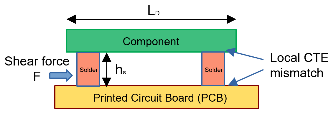 Solder fatigue calculation due to mismatch of local thermal expansion coefficients (CTE)
