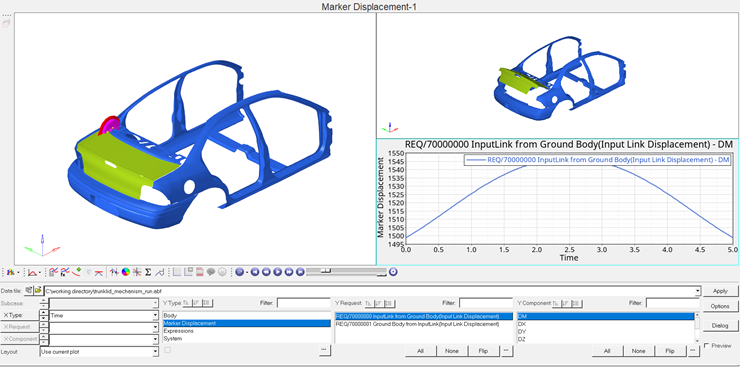 Upon clicking Run, MotionSolve is invoked and solves the model. The