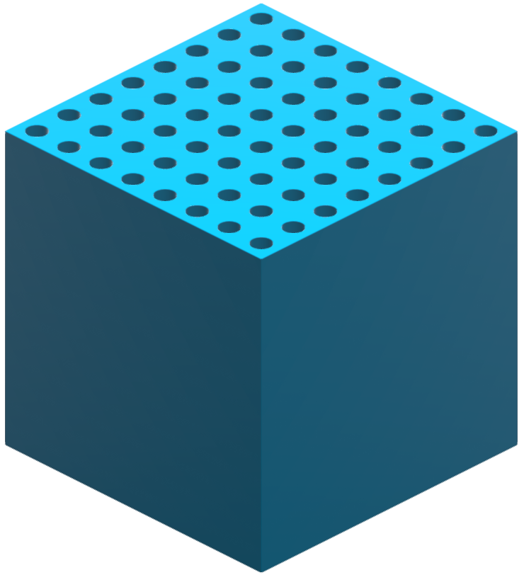 Sizing - Uniform (Cartesian Only) Make the unit cell dimensions equal along the x- and y-axes. Sizing - Width Enter the cell size or count along the x-axis. You can directly enter the cell size, controlled with a variable, or controlled in each position in space using a field (field-driven design). Sizing - Height Enter the cell size or count along the y-axis. You can directly enter the cell size, controlled with a variable, or controlled in each position in space using a field (field-driven design). Plane - Vector To control the direction in which the planar lattice is extruded, choose a predefined vector or enter the x, y, z components.- X Vector: Extrude the planar lattice along the local x-axis by setting the vector to [1, 0, 0].