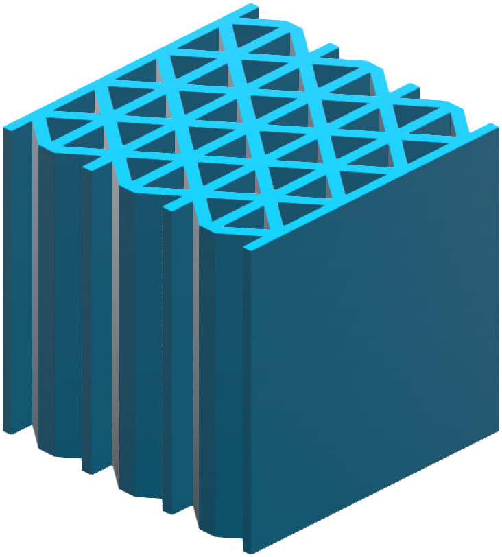 - Fillet: The lattice blends into the surrounding shell using a fillet. If you select this option, define the fillet Radius.