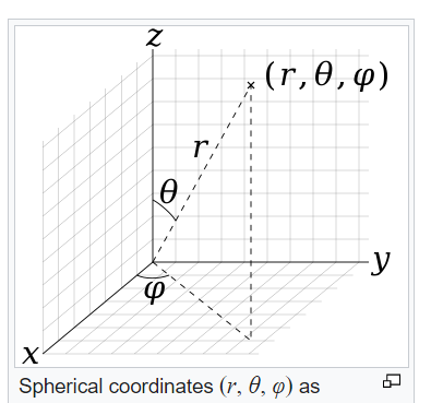 - Direction 3 is φ, which is angular and denotes elevation (measured relative to the XY plane).