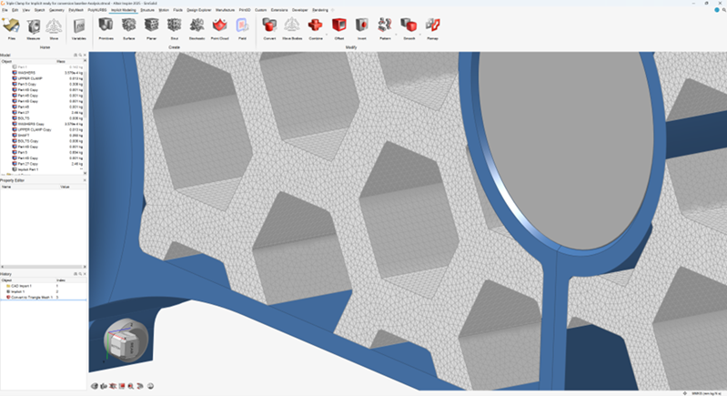 The mesh settings are specified on a part-by-part basis before you enter the implicit modeling context. To find them, make sure the Property Editor is shown (), and then edit the settings under the Mesh or CAD Facet sections of the part Properties.