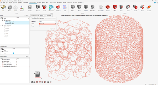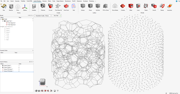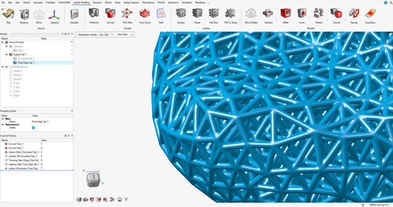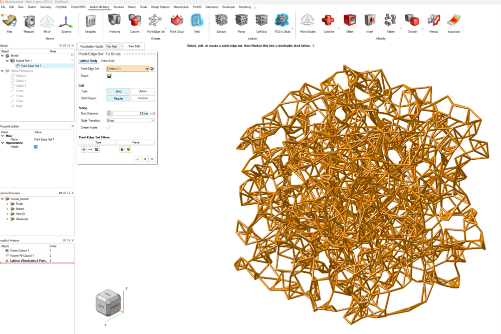 A remarkable number of engineering geometries can be derived from 3D points and edges between pairs of points. In Inspire Implicit Modeling, we call these point-edge sets (PES). You can leverage Inspire point-edge sets for advanced lattice design and the creation of other truss or strut-like structures.