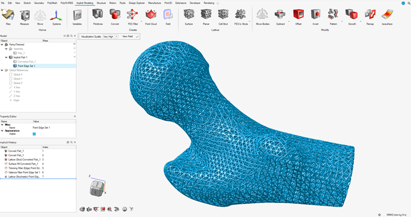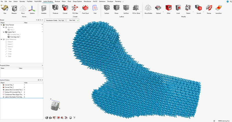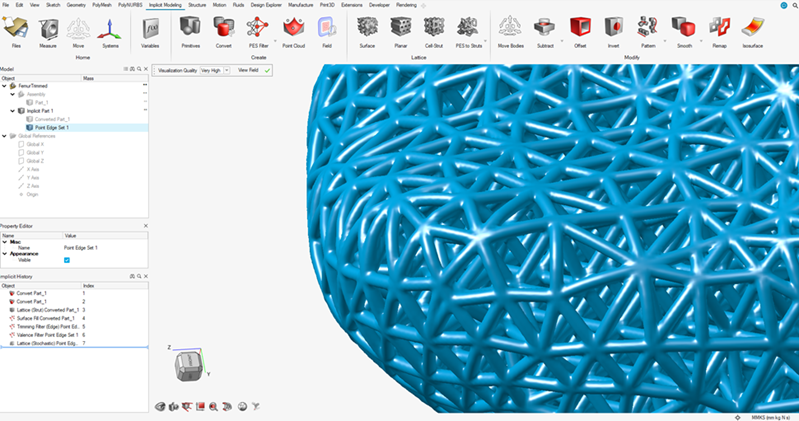 - Specify the edge (strut) diameters, possibly with field-driven design effects for gradients.