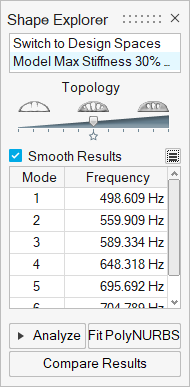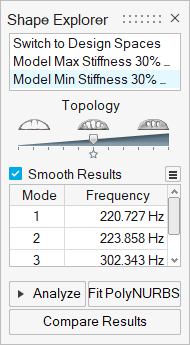 Option Description Maximize Frequencies The Shape Explorer displays the frequencies for the first six modes.