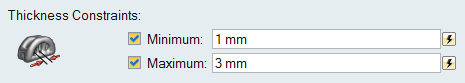 - To set a maximum thickness constraint, select the Maximum checkbox and enter a value in the text field. Note that you can set a minimum thickness, a maximum thickness, or both.