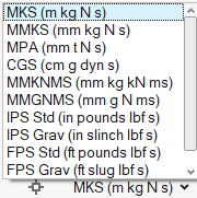 Click on the Unit System Selector in the lower right