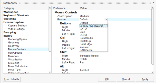 Note: To customize your mouse controls to mimic a different application, select