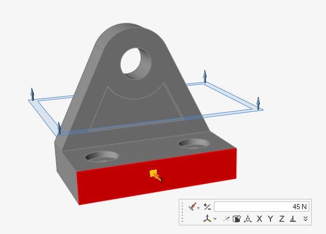 Double-click the red force arrow on the front face. You are now in edit mode,