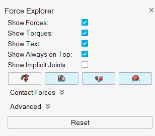 - In the Force Explorer, click the Reset button to revert to the default settings.