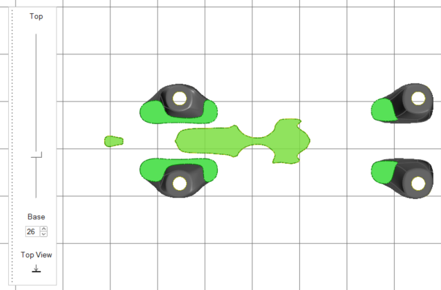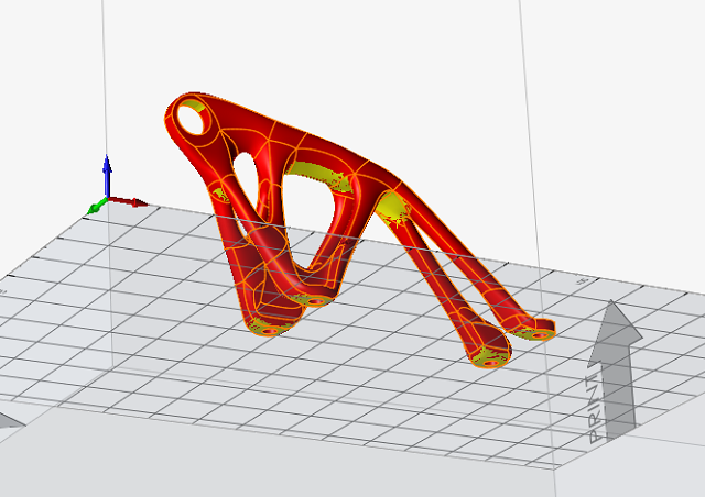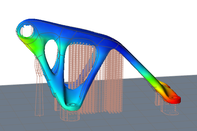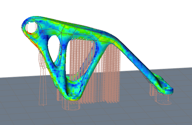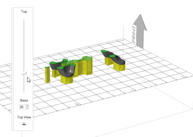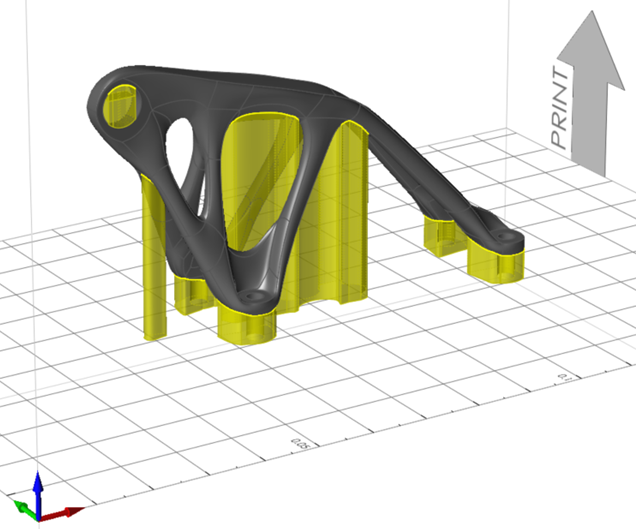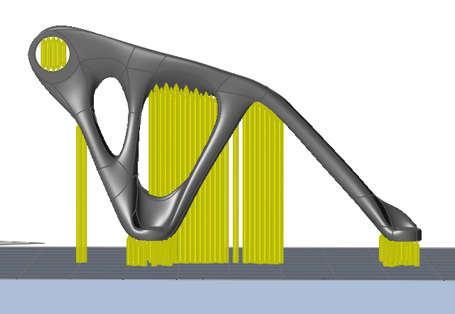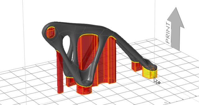 Inspire auto-generates a support preview, which can be configured according to design needs. This automatically generated support cannot be printed as it appears.