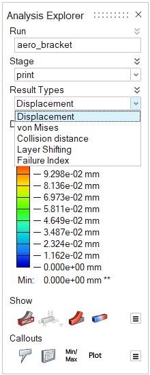 The displacement result type shows how much your model will displace or deflect during the 3D printing process. The areas of the model that are the darkest red will have the most displacement.