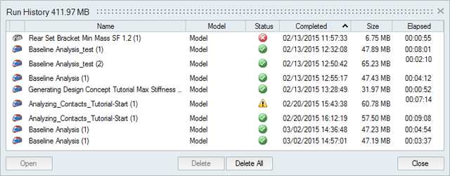 Tip: To find and open a tool, press Ctrl+F. For more information, see Find and Search for Tools.The run history is displayed.