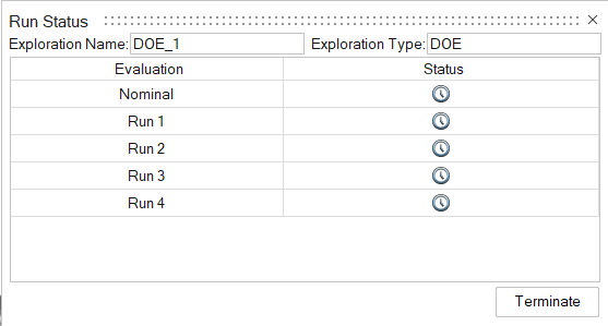 Here, you can track the progress of each run.To Do this Note Check a run while running a large DOE Right-click on a run that's in progress or completed and select View Now. The folder for the run in the output directory opens.