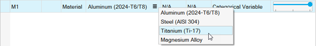 - Nominal Value: Default value of the variable; also serves as the initial value in an Optimization exploration.