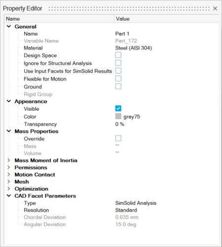 Properties that are not editable appear grayed out.