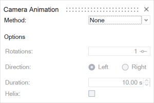 Method Description None (default) No animation. Turntable - Enter the number of Rotations.