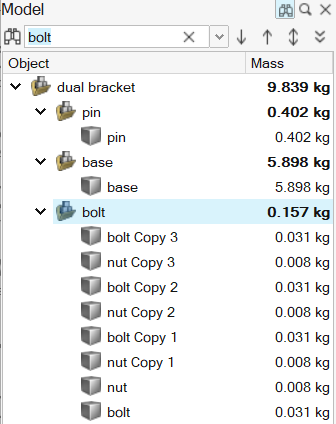Find entities in the model that contain the search string you enter. The search results are not filtered.