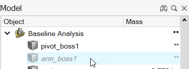 The suppressed entity is displayed in grayed-out, italicized text in the Model Browser and is removed from the modeling window.