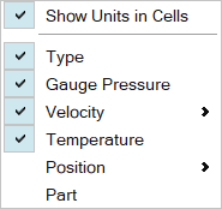 Fluids 分析会生成多种不同的结果类型,包括:表压、速度和温度。点击结果类型列表中的对象,查看相应的结果。