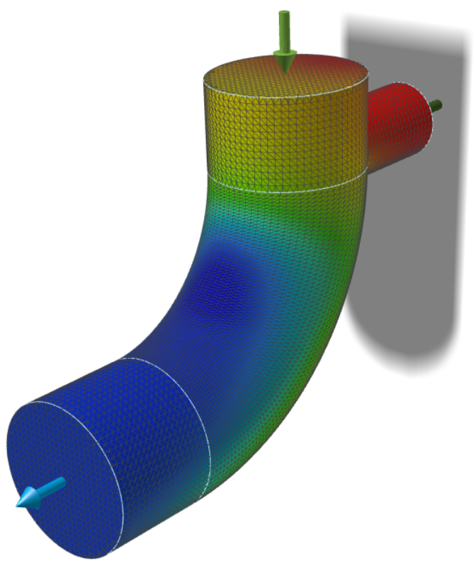温度结果类型显示流体和实体中温度的空间变化。模型中最红的区域温度最高。