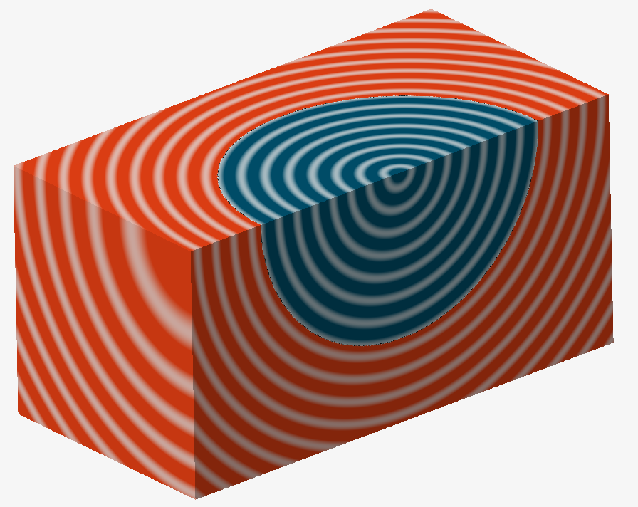 隐式建模利用了几何体环境中的一些重要约定。首先,假设负标量值是建模对象的内部,正标量值是外部。对象曲面本身会出现在空间中每个返回零标量值的位置。因此,场中的带符号标量值可以立即对空间中的任何坐标进行内部/外部检查。