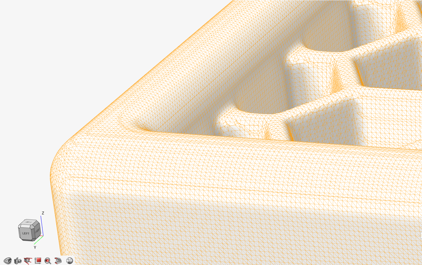 首先,您应该注意,转换中生成的网格质量与隐式建模期间使用的可视化质量设置直接相关。如果使用极高设置,三角形网格将非常精细,如下图所示。使用越来越低的可视化质量设置将产生越来越粗糙的网格。