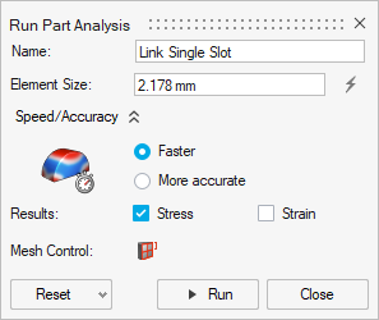 使用“运行零件分析”工具为要分析的零件配置各种设置。