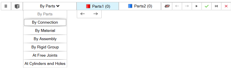 从一个零件对前进至下一个零件对 | 如果使用“在自由铰接处”选项,请使用操作栏中的箭头键快速从一个零件对导航至下一个零件对。按住 Ctrl 键并点击操作栏上的创建图像,从而快速创建并前进至下一个零件对。 |