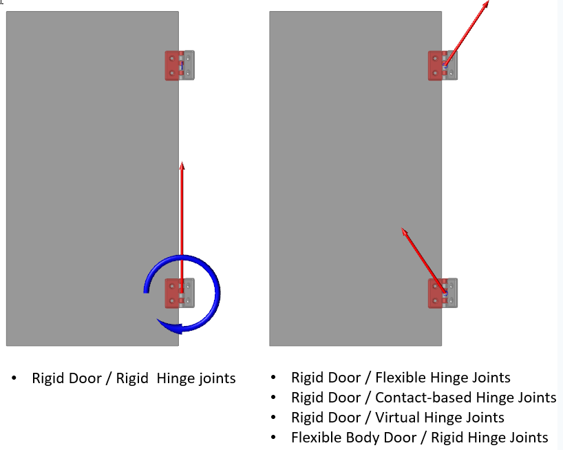 在下图中,左侧的门与右侧的门的建模方式不同。请注意反作用力的类型及其方向的不同。