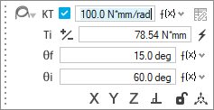 - 可选: 输入弹簧自然状态下的自由角度 (θ f),而非预载扭矩。(预载扭矩基于自由角度和扭转刚度自动进行计算。)