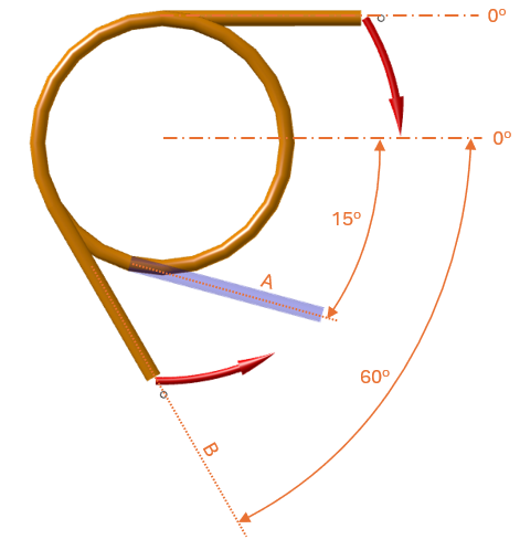 - 自由角度是弹簧处于自然状态下的角度。如果输入预载扭矩,即会根据扭转刚度自动计算自由角度。