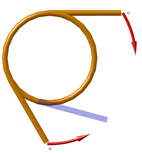 - 如果选择孔和曲面,单次点击放置扭力弹簧的支点,第二次点击完成连接。(可以选择同一孔或曲面两次,这种情况下,第二次点击会被视为对地平面起反作用。)按住 Ctrl 键,取消选定一个几何特征。
