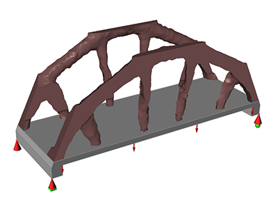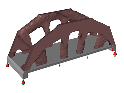 如果要优化使用了不同零件材料的多个设计空间,根据总质量所得到的优化结果将不同于根据总设计空间百分比所得到的优化结果,因为材质较软的区域所生成的形状体积会增加。