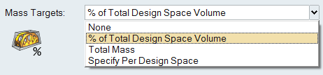 对于拓扑优化,该目标可以定义为设计空间总体积的百分比,或者整个模型的总质量。如果用户的模型中有多个设计空间,可以给每个空间单独设定质量目标。还可以将质量目标设为“无”。
