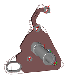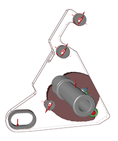 - 位移约束 — 通过位移约束工具施加。注: 优化完成后,将“形状浏览器”中的拓扑滑块拖动至最右端,即可获得质量最小化的最佳结果。