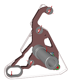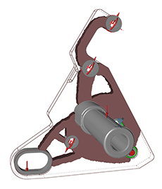 如下图所示,根据最小安全系数中定义的应力约束进行质量最小化,从而对摩托车支架进行优化。随着安全系数增大,需要添加更多的材料来抵抗所施加的载荷。图 1. 初始模型