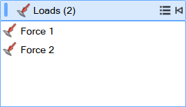 - 使用载荷收集器选择要纳入分析的载荷。选择载荷工况将包括其载荷。提示: 您还可以在模型浏览器中选择载荷。注: 点击展开/折叠