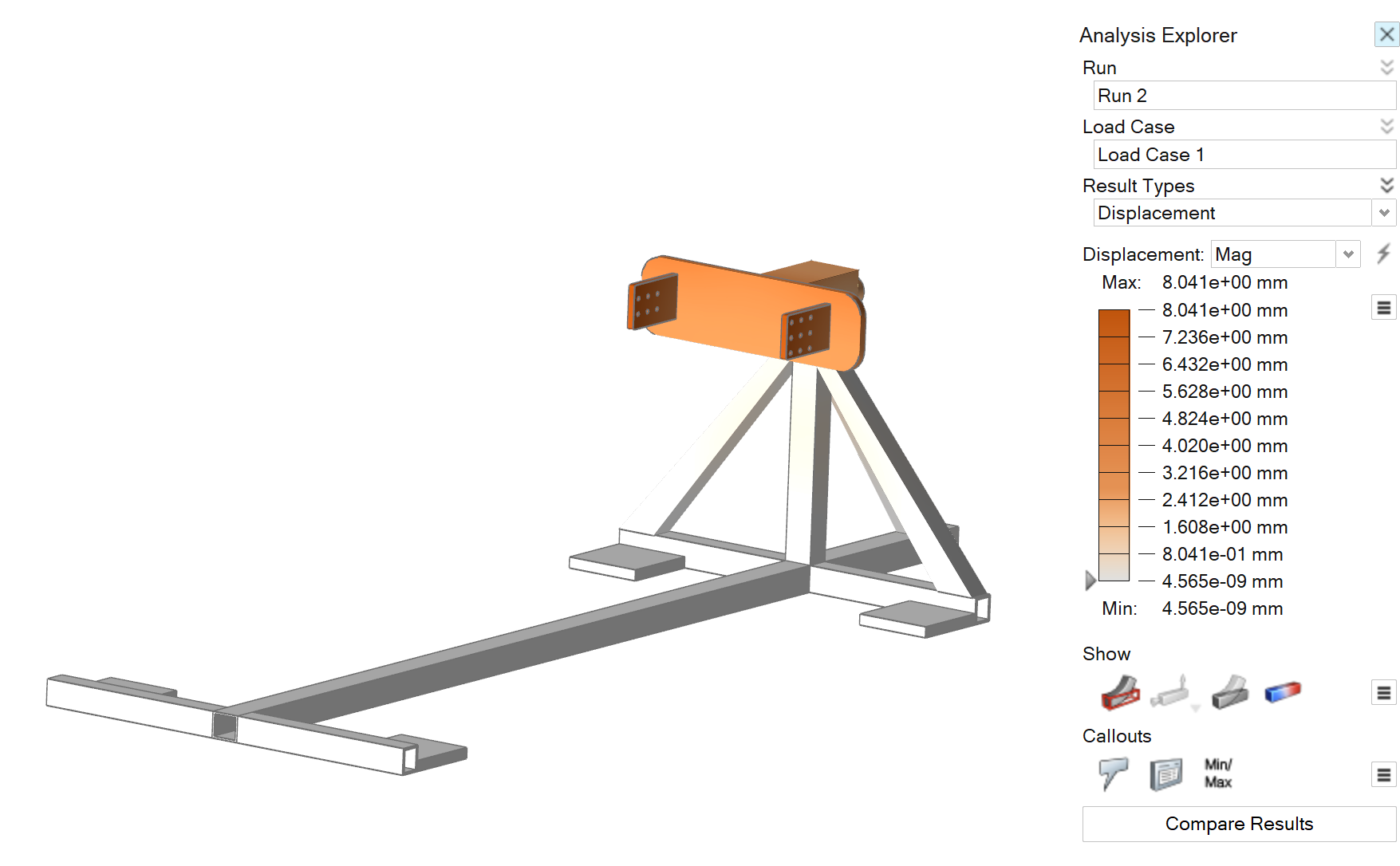 负面效果以棕色阴影显示,表示设计变量的正面变化会导致响应的负面变化。FA_Tube_B 的线性作用为 -2.021,意味着管道底座宽度的增加将减少位移响应。从最小设计变量 96 mm 到最大设计变量 144 mm 的全部线性作用约为 -2 mm。