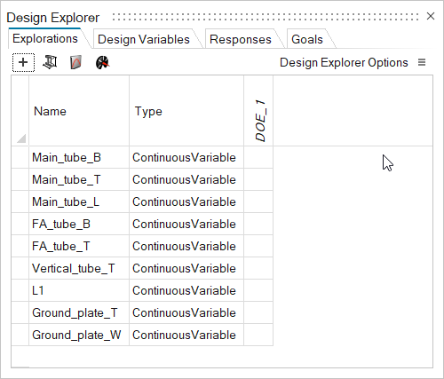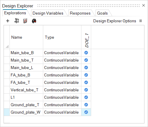 在 DOE_1 下选择空单元格,以激活所有变量。